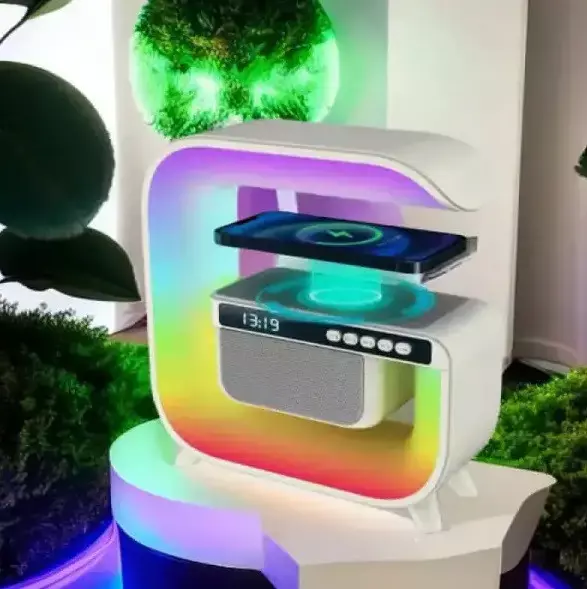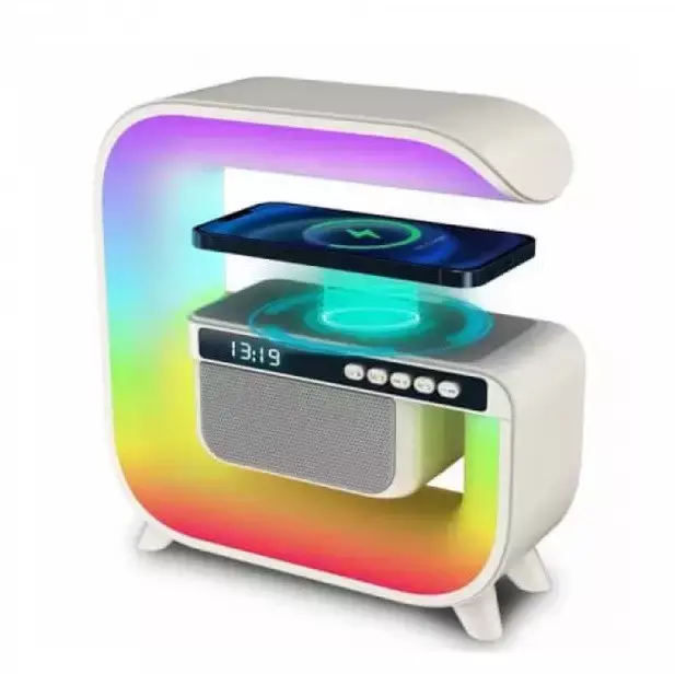 Колонка-нічник з функцією бездротової зарядки, годинником,
