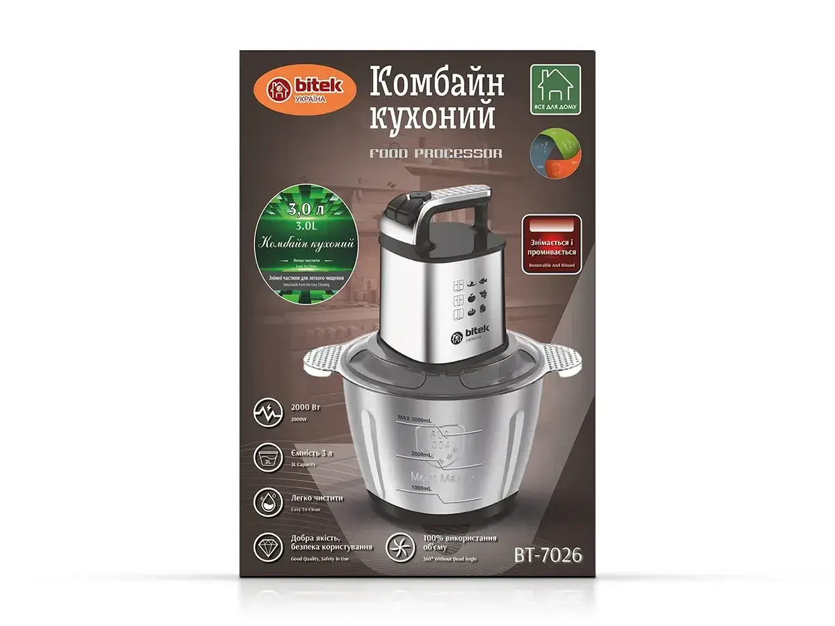 Комбайн кухоний подрібнювач Блискавка 3,0л 2000Вт BITEK BT-7026/
