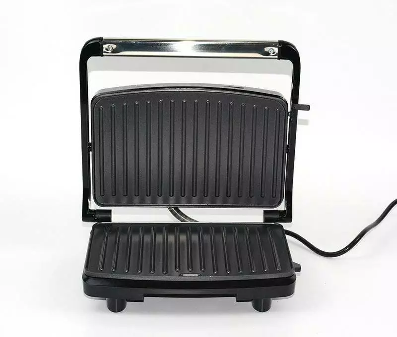 Антипригарне покриття пластин дозволить вам легко та швидко очистити їх після використання. Стулки гриля відкриваються на 90 градусів, що дозволяє використовувати їх як поверхні для смаження одночасно. Є спеціальний піддон, куди стікає сік від продуктів. Плавне регулювання температури дозволить вам підібрати оптимальний режим для будь-якого продукту.