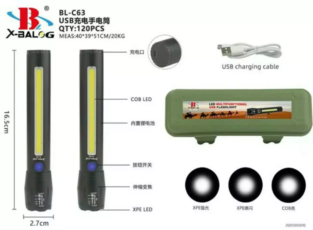 Ліхтар Police з бічною підсвіткою BL C63 COB+USB CHARGE (240 шт./ясть)