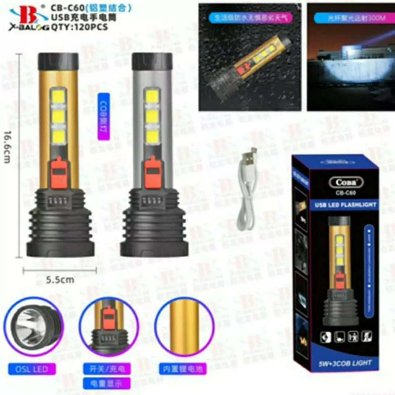 Ліхтар з бічною підсвіткою CB C60 COB+USB CHARGE (120 шт./яский)