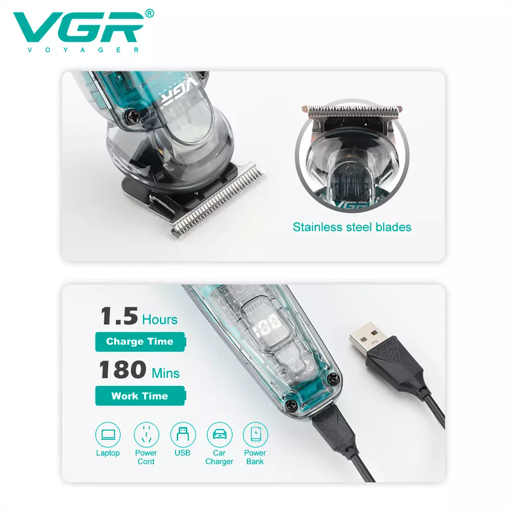 Машинка для стрижки волосся триммер VGR V-949/ 8820 з USB зарядкою (40)