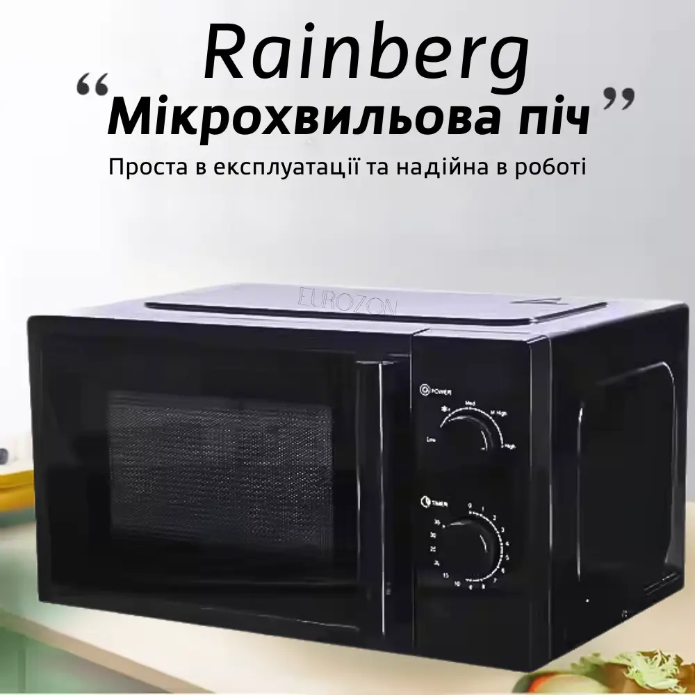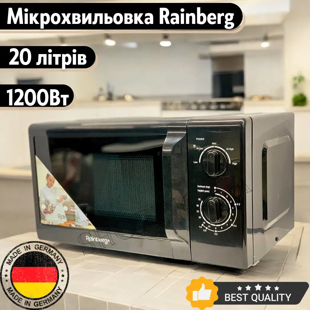 Мікрохвильова піч Rainberg RB-7151 BLACK з таймером Потужна мікрохвильовка 1200 Вт/20 л (1)