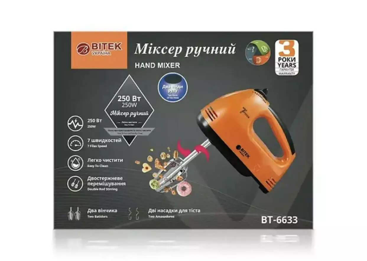 Міксер ручний 250Вт BITEK BT-6633/ 7114 (24 шт/ ящ)