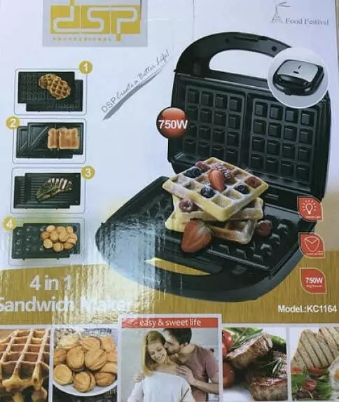 Мультимейкер 4 в 1 Сендвічниця Вафельниця Гриль Горішниця DSP KC 1164 (6 шт./ясне)