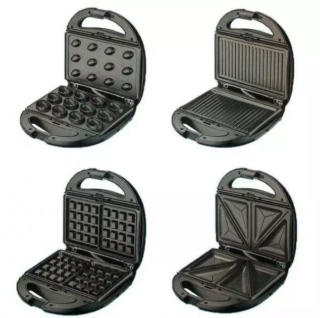 Форми легко змінюються для приготування різних страв, наприклад, з вафельниці на гриль, або з гриля на сендвічницю. Для чищення приладу та швидкої зміни панелей у сендвічниці є спеціальний кнопковий механізм.