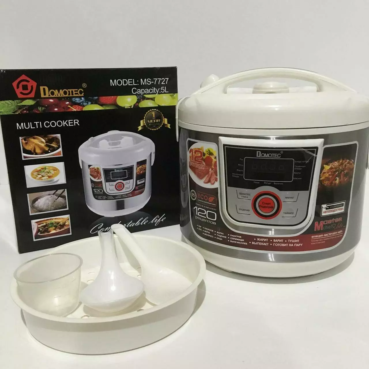 Мультиварка DOMOTEC MS-7727 має такі корисні функції, як підтримка температури готових страв, відкладений старт, розігрів, попереднє відключення авто підігріву. На окрему увагу заслуговує програма МУЛЬТІ КУХАР з можливістю встановлення власних параметрів приготування. Тепер у цьому пристрої можна робити навіть найвишуканіші страви за будь-якими рецептами. DOMOTEC MS-7727 також оснащена чітким світлодіодним дисплеєм та знімним паровим клапаном.