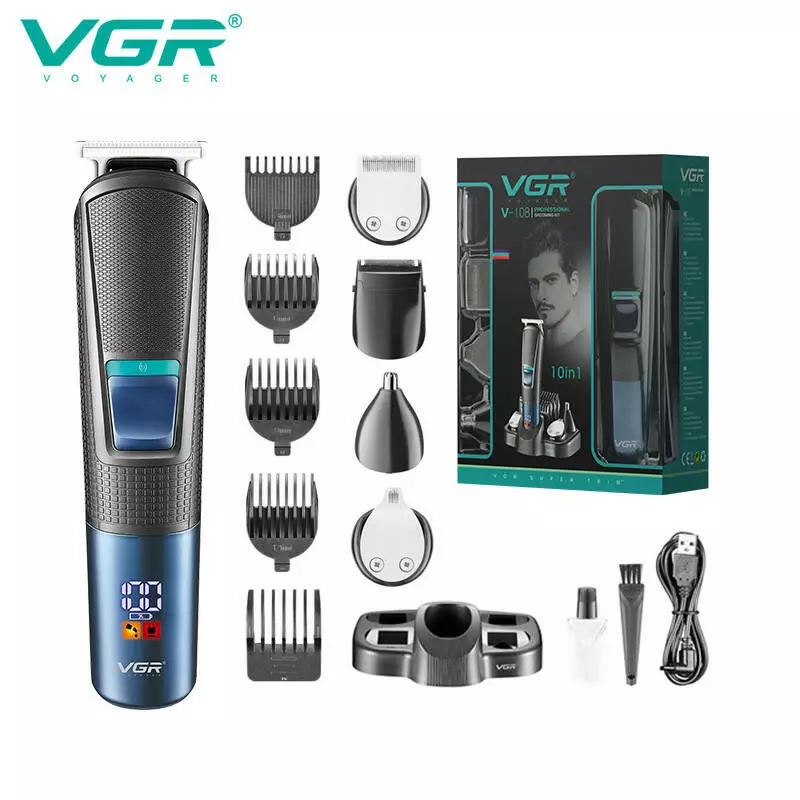 Набір для стриження VGR 10 в 1 V-108, 10 насадок, LED display
