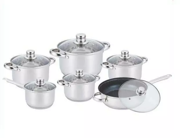 Набір каструль 12 пр Нерж 2,1л; 2,1л; 2,9л; 3,9л; 6,5 л +сковорода