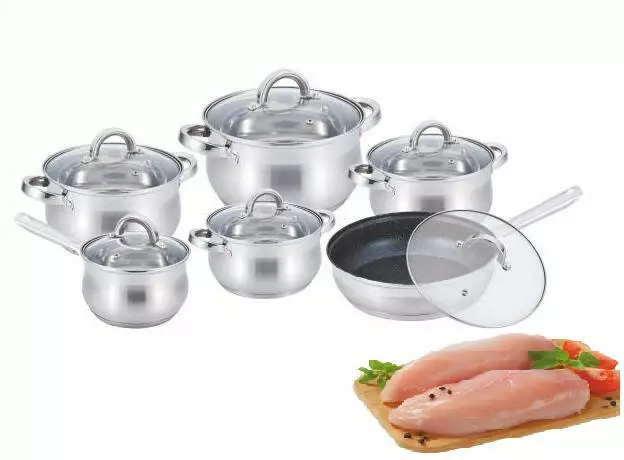 Набір каструль 12 пр. Нерж 2,1л; 2,1л; 2,9л; 3,9л; 6,5 л +сковорода