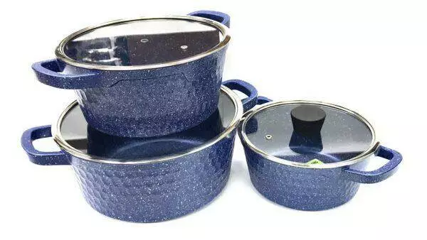 Набір каструль 6 пр 2,5 л; 4,5 л; 6,5 л Мармурове блакитне покр