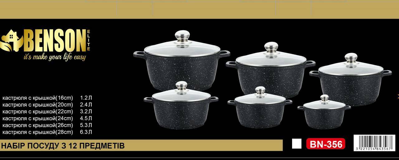 Набір каструль із кришкою, 12 пр. Мармурове покриття. BN-356 (2)