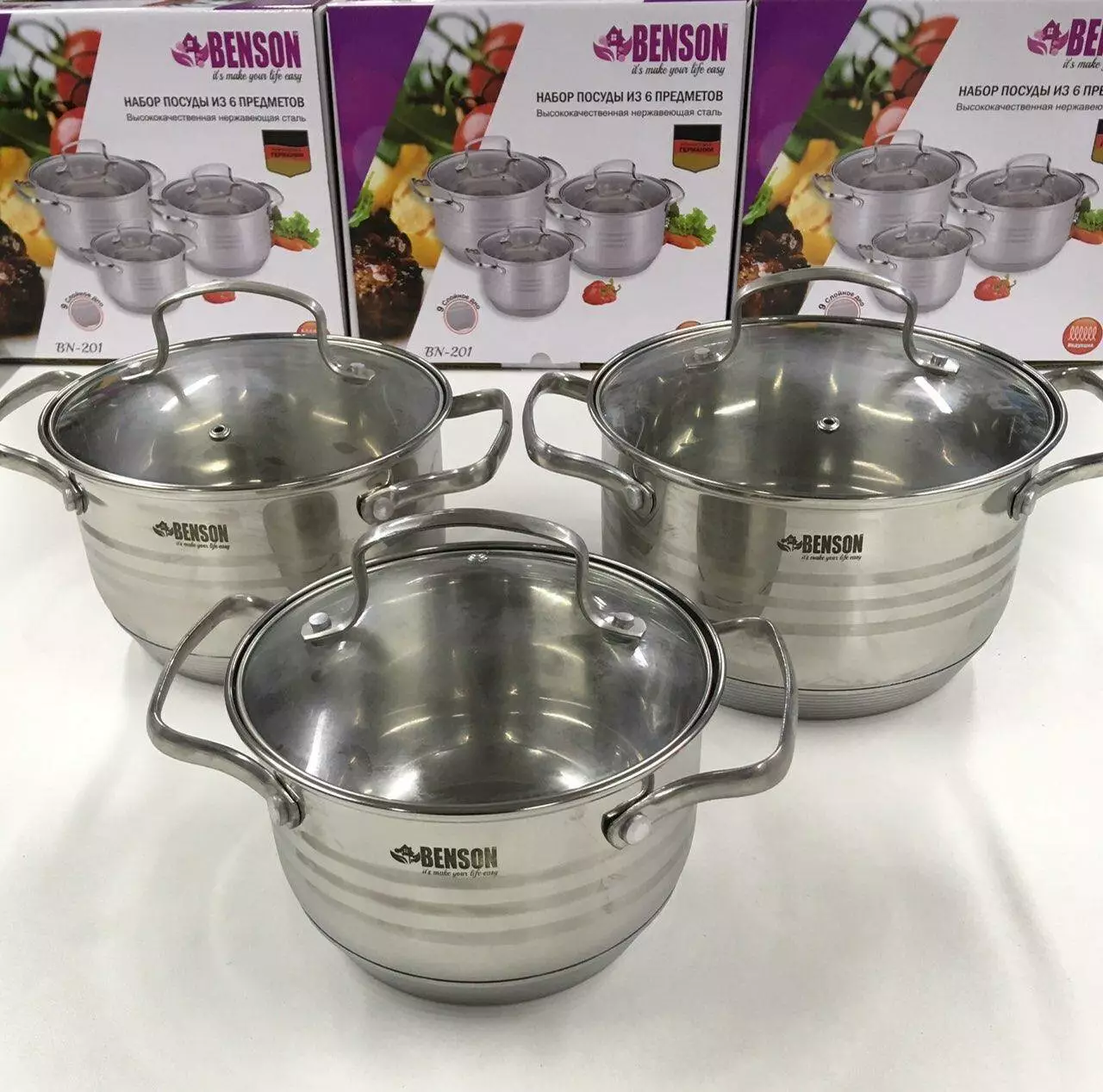 Набір каструль неірж 6 пр BN-201 (4 шт./ящ)