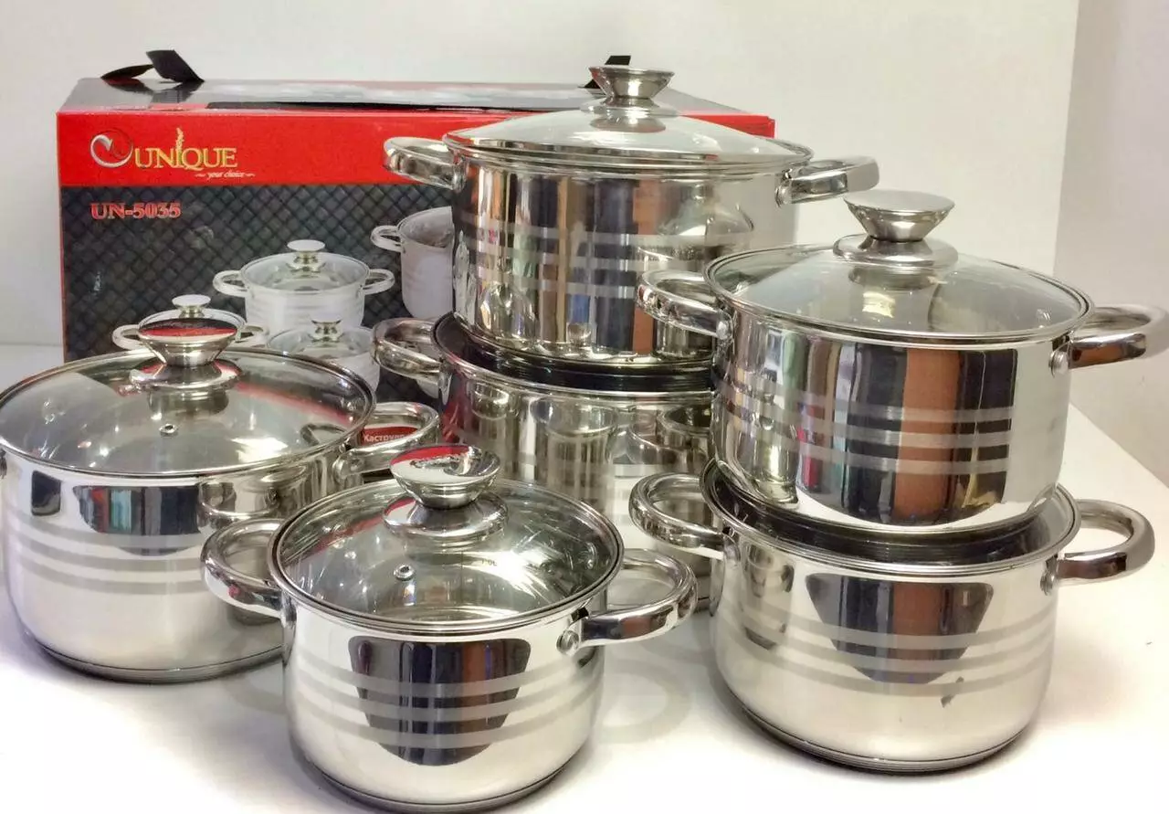 Набір каструль UNIQUE UN-5035 12 пр. (2,1л, 2,9 л, 2,9 л, 3,9л, 5,1 л, 6,5 л, з кришками) (2 шт./яск)