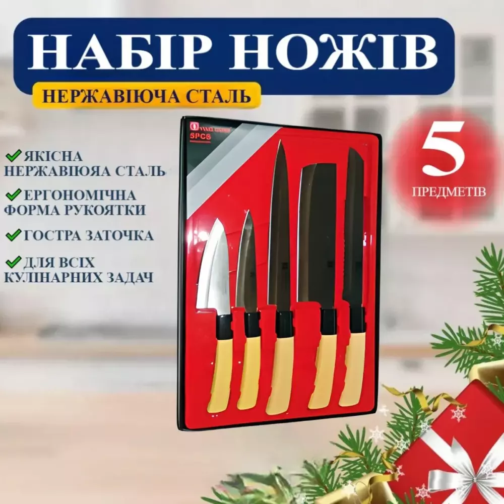 Набір ножів для кухні з неіржавкої сталі на 5 предметів у коробці