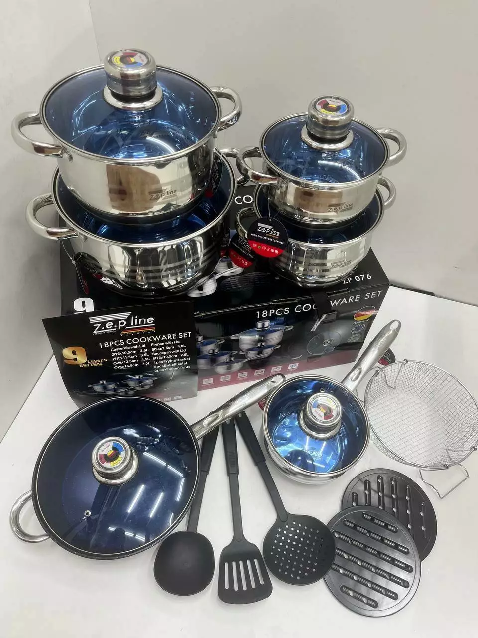 Набір посуду із нержавіючої сталі Zepline на 18 предметів ZP-076