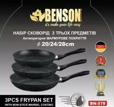 Сковорода Benson BN-517 28см сковорода з кришкою, антипригарне