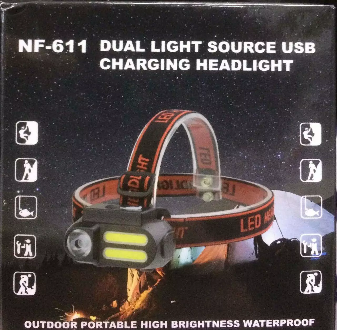 Налобний ліхтар акумуляторний NF 611/AVM 128 XPE+COB (240 шт./яский)