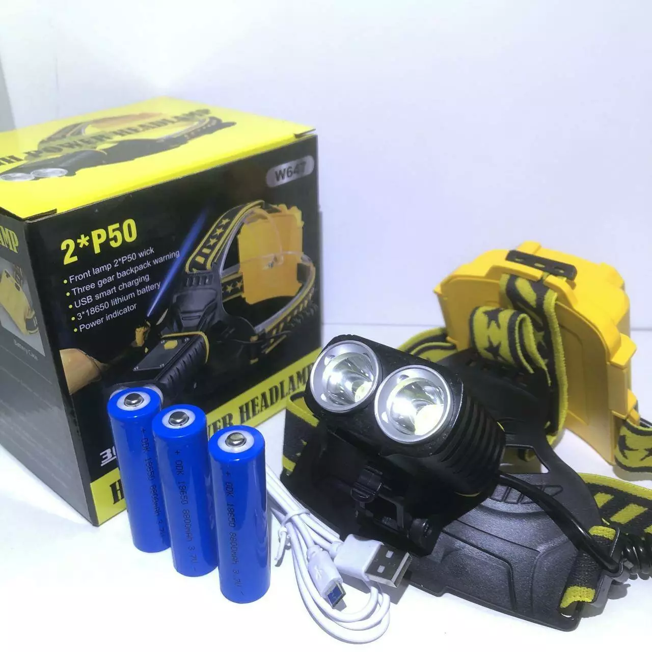 Налобний ліхтар на 3 акумулятори 18650*2 P50 USB*Type C W-647 (60)