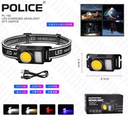 Налобний ліхтар PL-192, холодне, тепле, червоне, синє світло, ЗУ