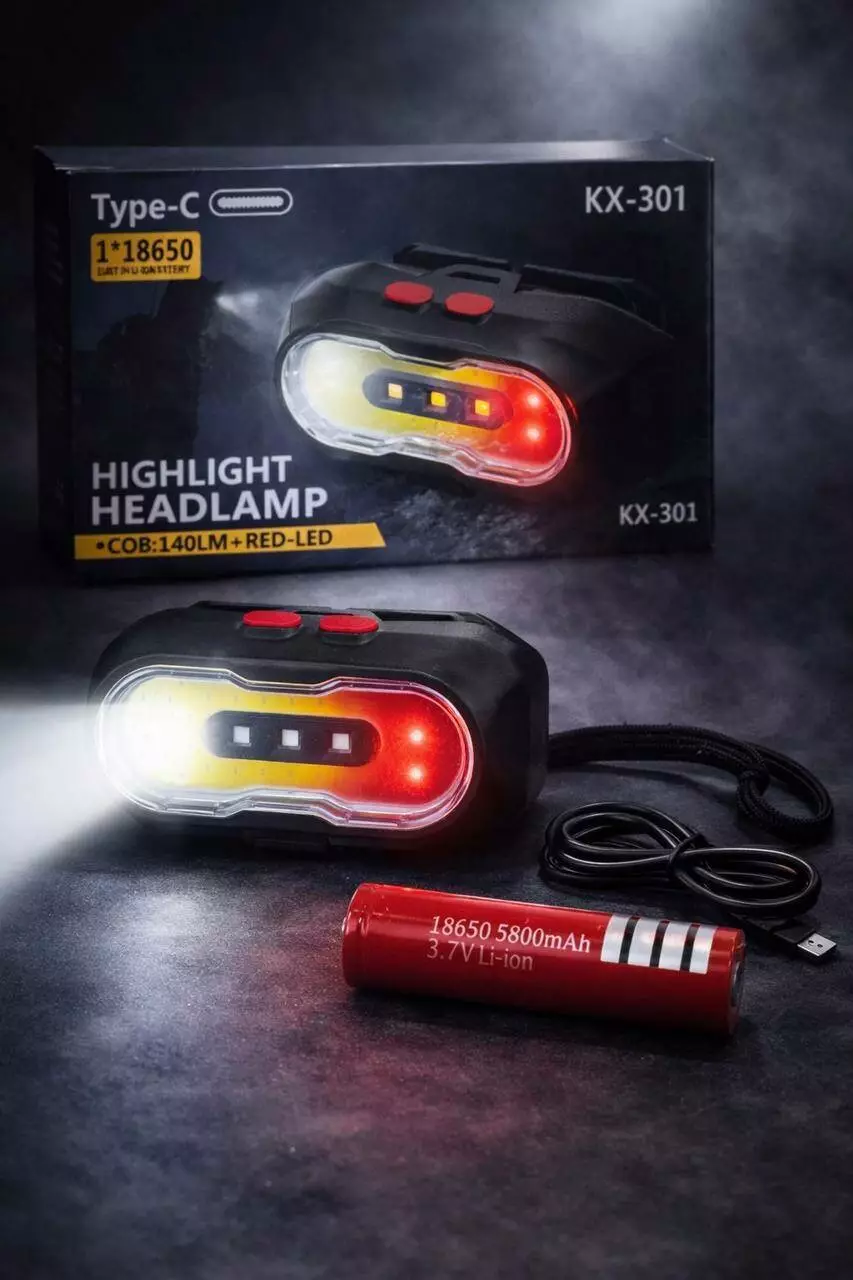 Налобний ліхтар зі знімним акумулятором і червоним світлом KX 301/