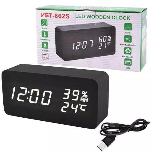 Настільний годинник від мережі та від батарейок із білою підсвіткою, температурою та вологістю VST 862S-6 (80)