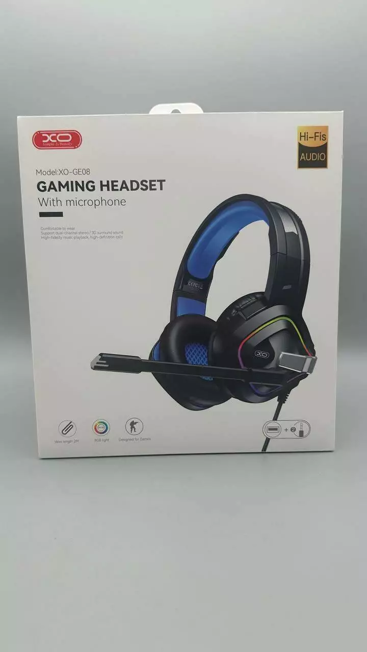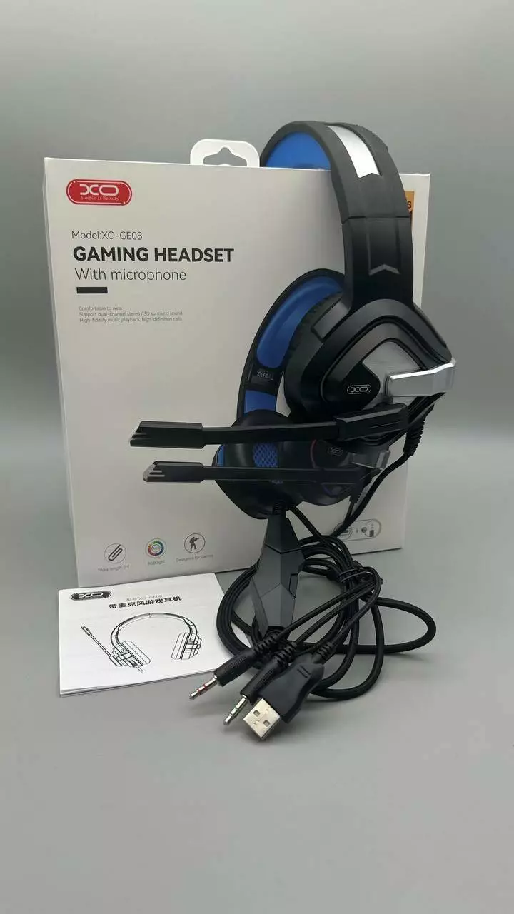Навушники провідні XO. GE-08 Static RGB Long Mic Headworn Game Earphones USB+Dual 3.5mm (40)