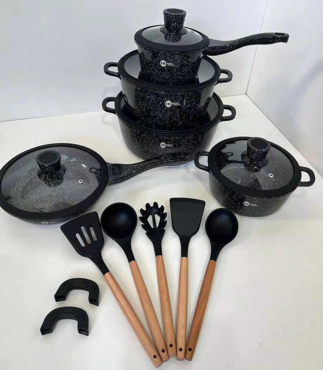 НК-316 Посуд набір круглих каструль (17 предметів) + силікон приладдя Higher Kitchen (4)