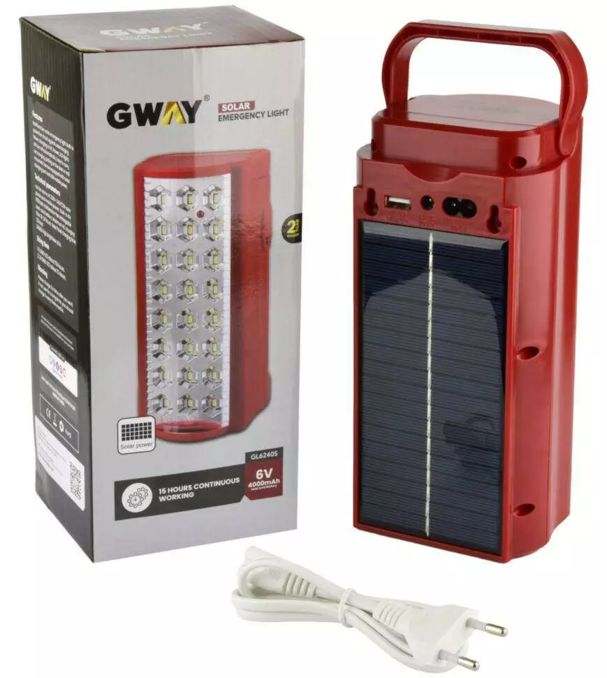 Переносний ліхтар з повербанком і сонячною панеллю на 24 Led GWAY