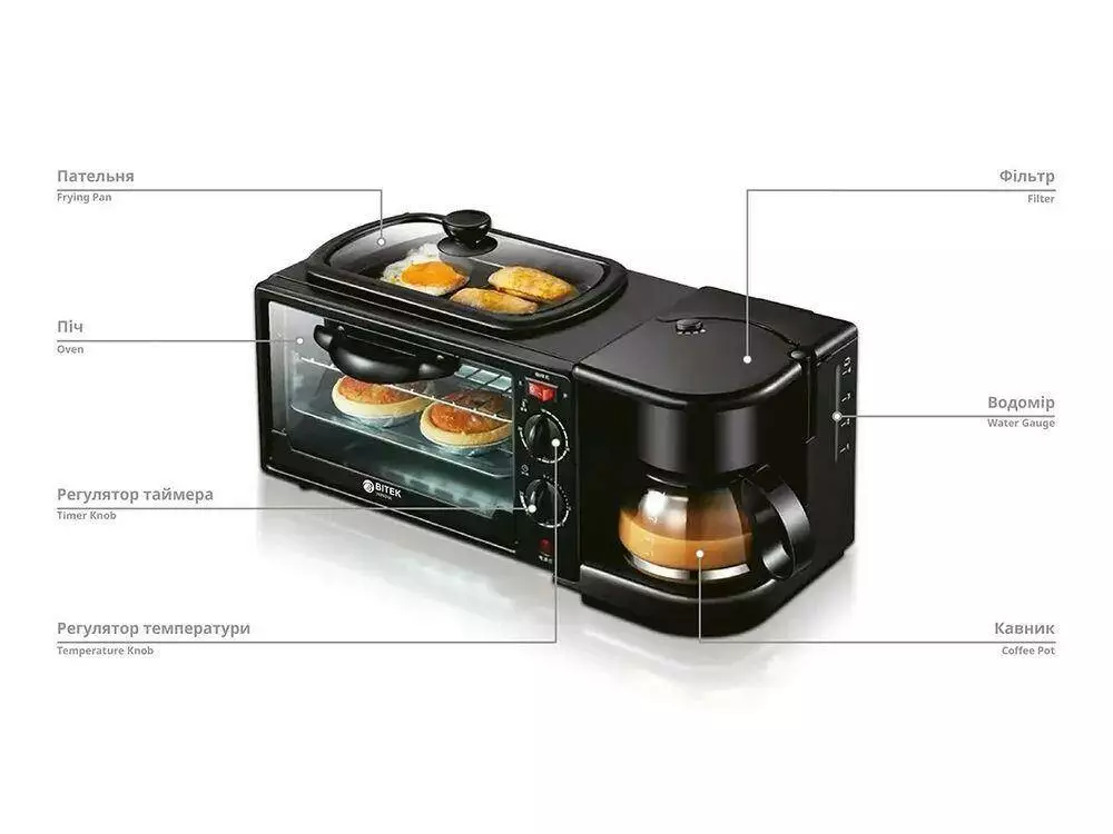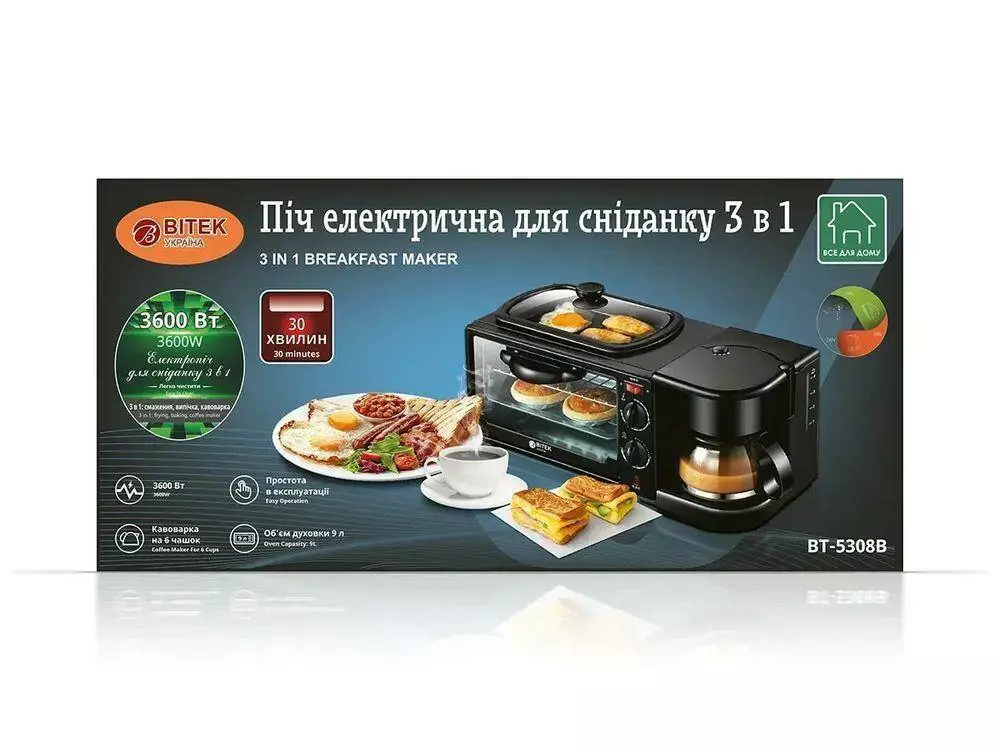Піч електрична для сніданку 3 в 1 3600Вт BITEK BT-5308R/ 6550 (4)
