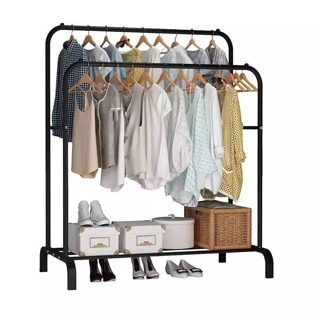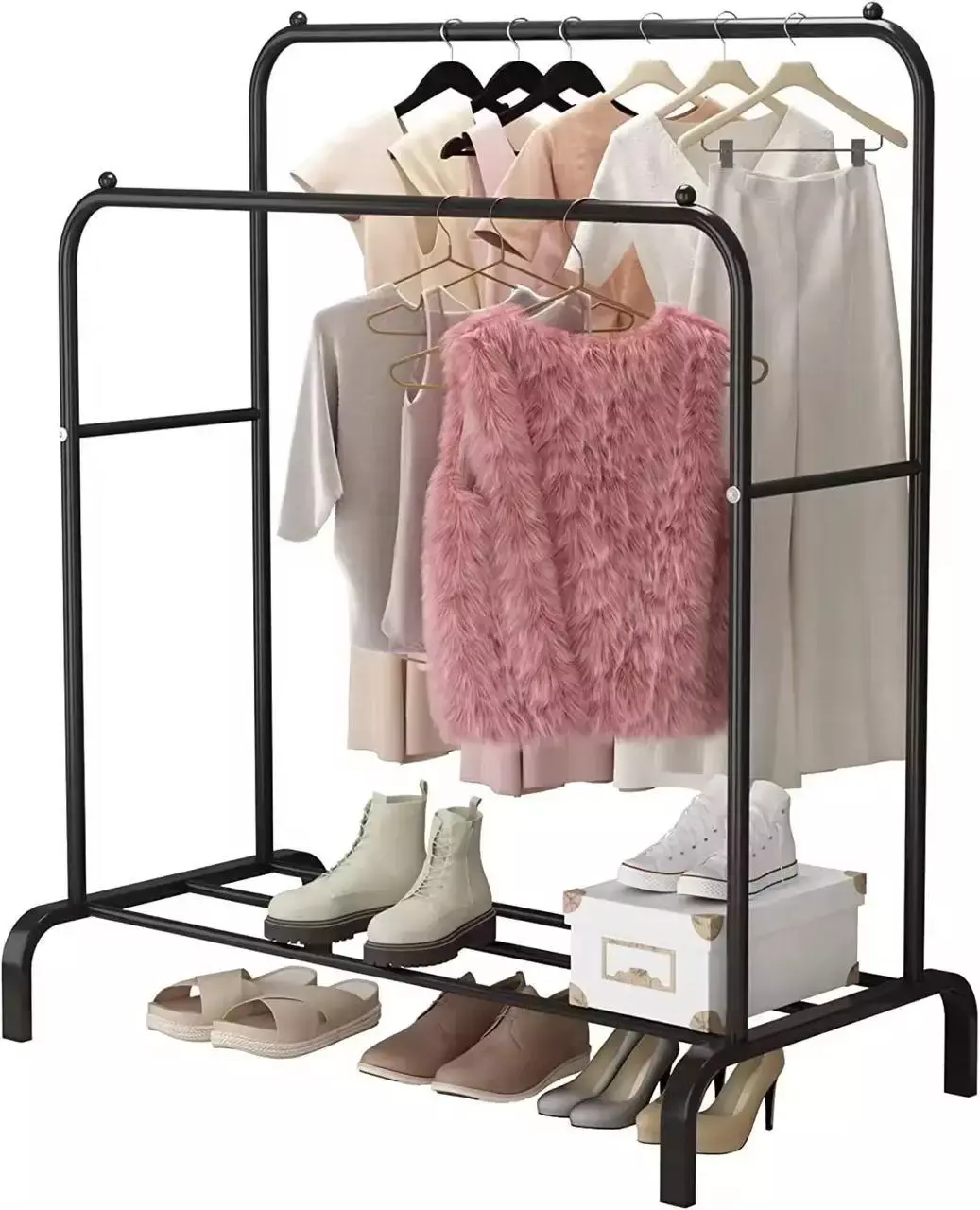 Подвійна стійка-вішалка для одягу Double floor Hanger TW610 з полицею для взуття та гачками (10)