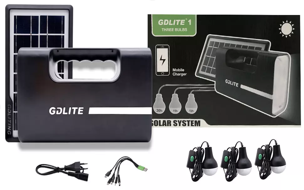 Портативна станція для заряджання GD 1/8418 з 3 лампами та сонячною панеллю (16 шт.)