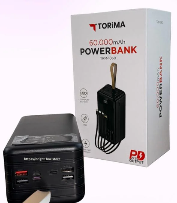 Повербанк Torima TRM-1060 22,5W / 60000 mAh, з ліхтариком, 3 кабелі
