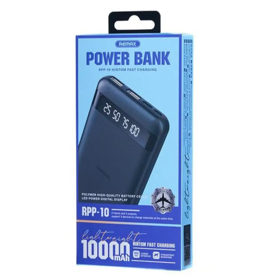 Power bank Remax RPP-10 10000 mAh с дисплеем повербанк 2xUSB Black