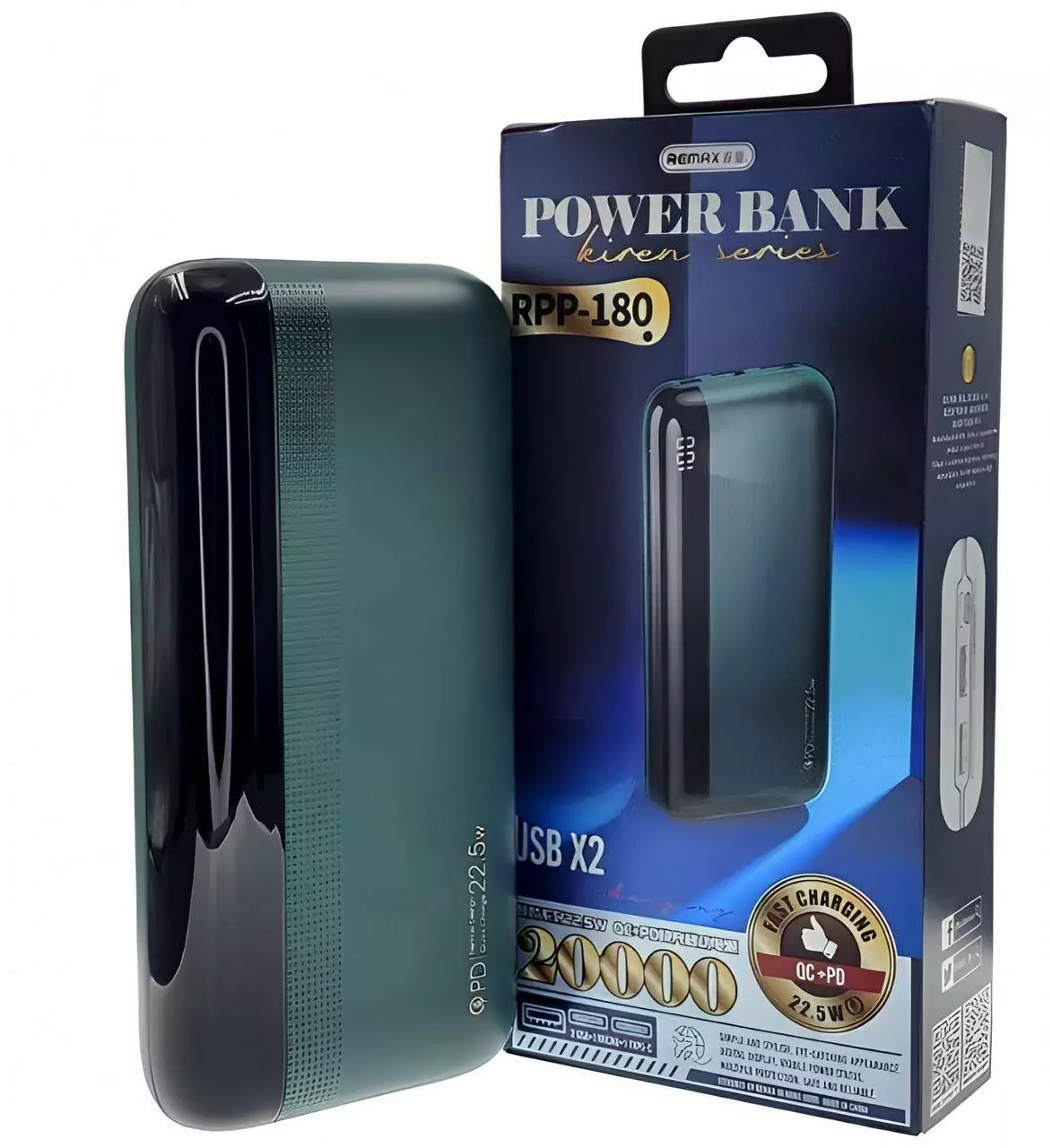 Power Bank Remax RPP 180 20000 mAh Kireni Series QC 22,5W+PD 20W Fast Charging Blue (20 )
