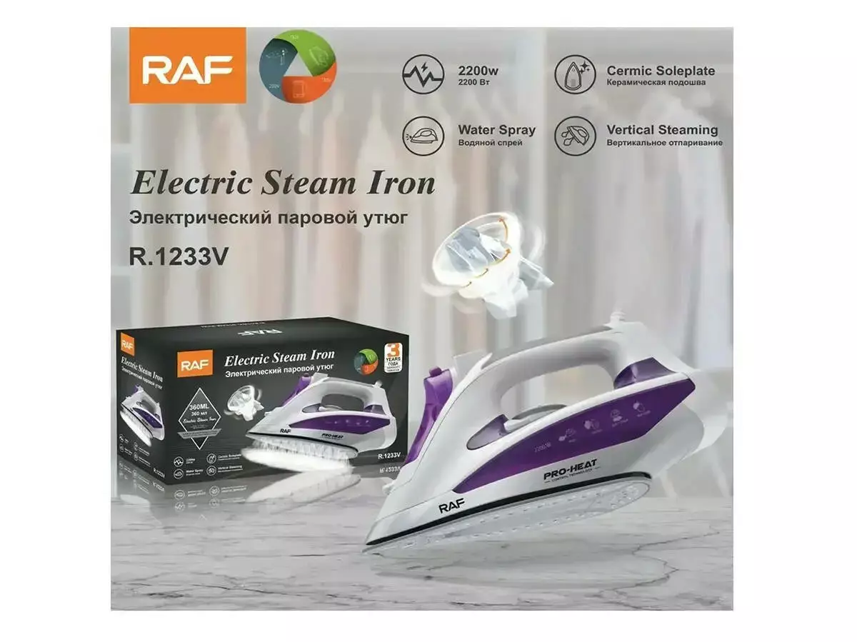 Праска з керамічною підошвою 2200Вт RAF R1233V/ 7441 (10 шт/ящ)