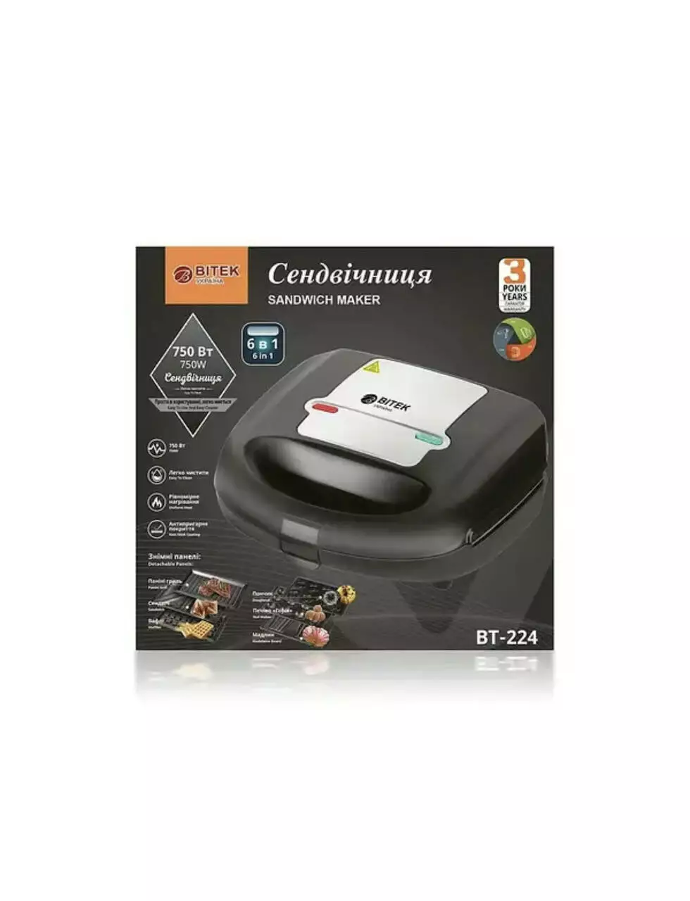 Сендвічниця 6 в 1 750Вт BITEK BT-224 7121 (6 шт)