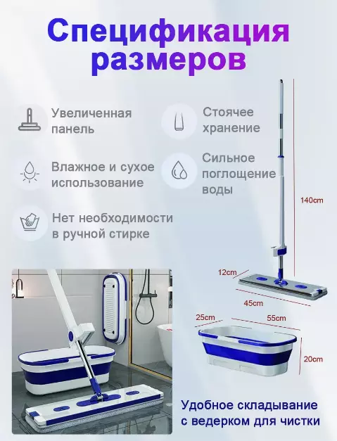 Швабра з віджимом і складним ведром Hands Free Mop (20)