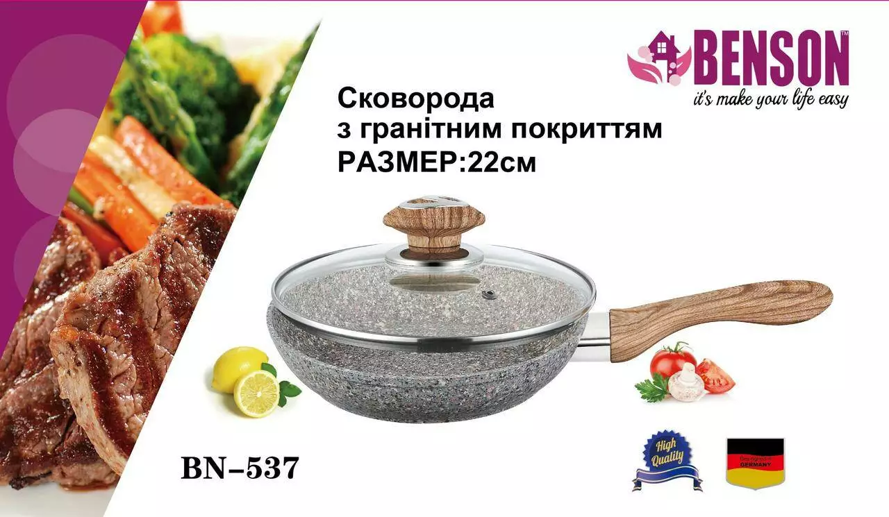 Сковорідка з кричкою 22 см гранітне покр. з червоним BENSON BN-537 (8 шт.)