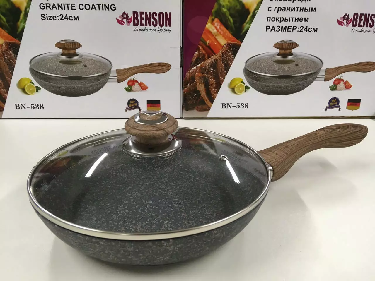 Сковорідка з кричкою 24 см гранітне покр. з червоним BENSON BN-538 (8 шт.)
