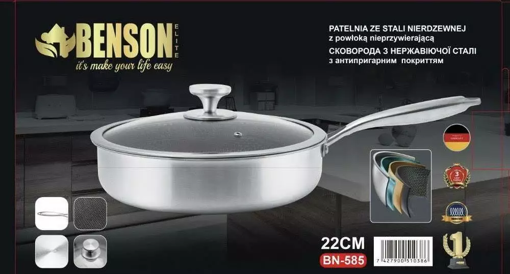 Сковорода глибока 22 см із неіржавкої сталі професійна Антипригарна BN-585 (6 шт./ящ)
