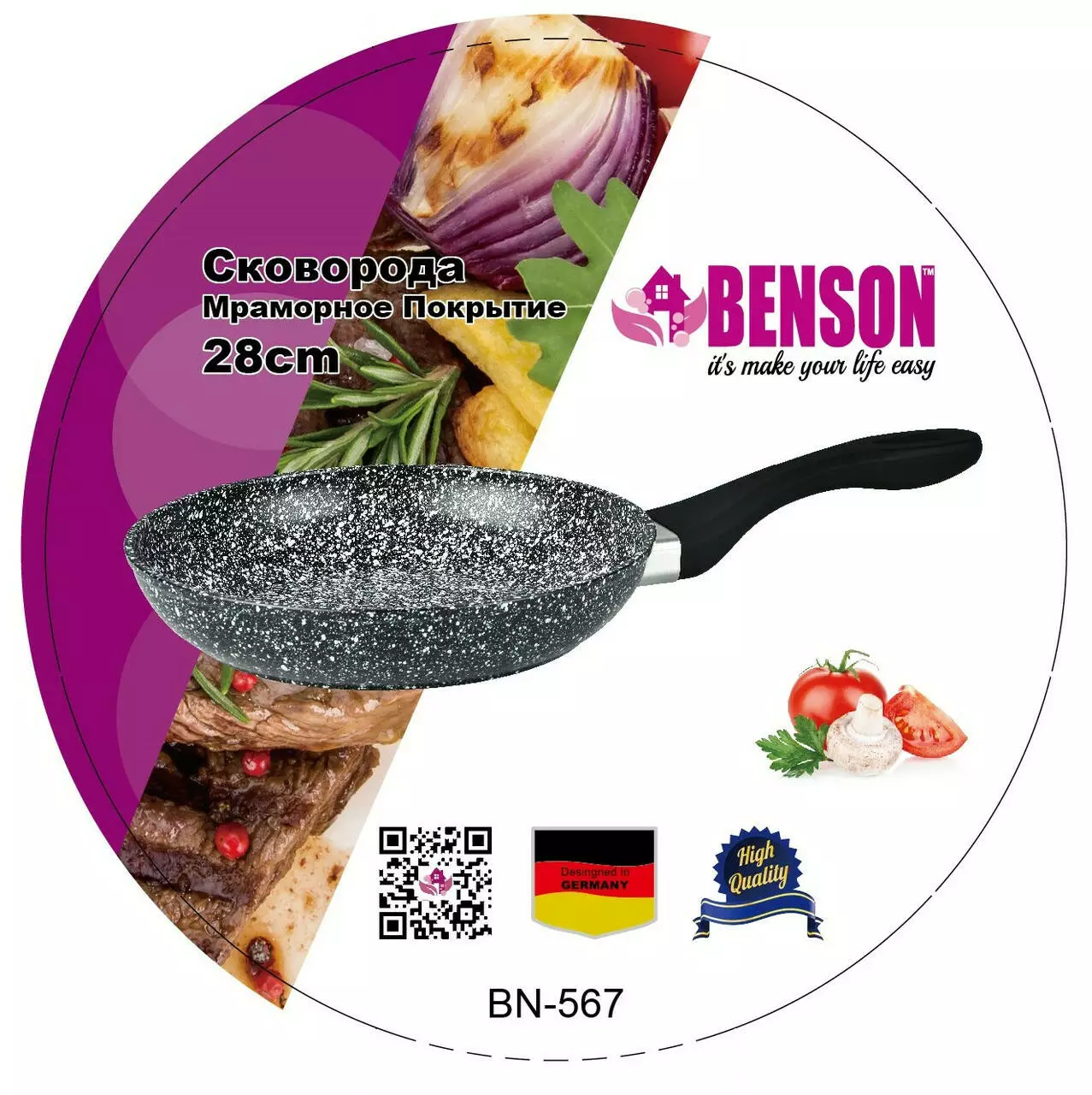 Сковорода (кований алюміній) мармурове покриття 28 см BN-567 (6