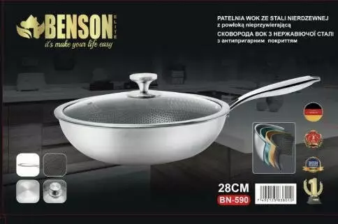 Сковорода WOK 28 см із неіржавкої сталі професійна Антипригарно BN-590 (6 шт./ящ)