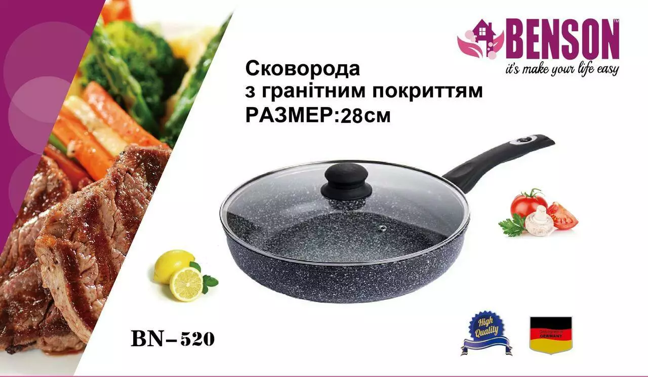 Сковорода з кришкою 28 см, глибока, гранітне покр. світле BN 520 (8 шт./ясть)