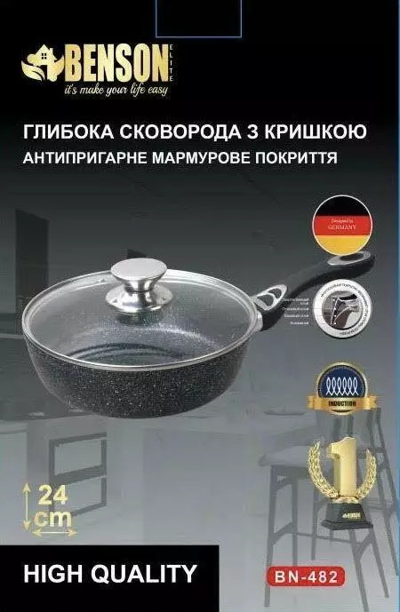 Сковорода з кришкою глибока мармурове антипригарне покриття 24*6,5 см BN-482 (6)