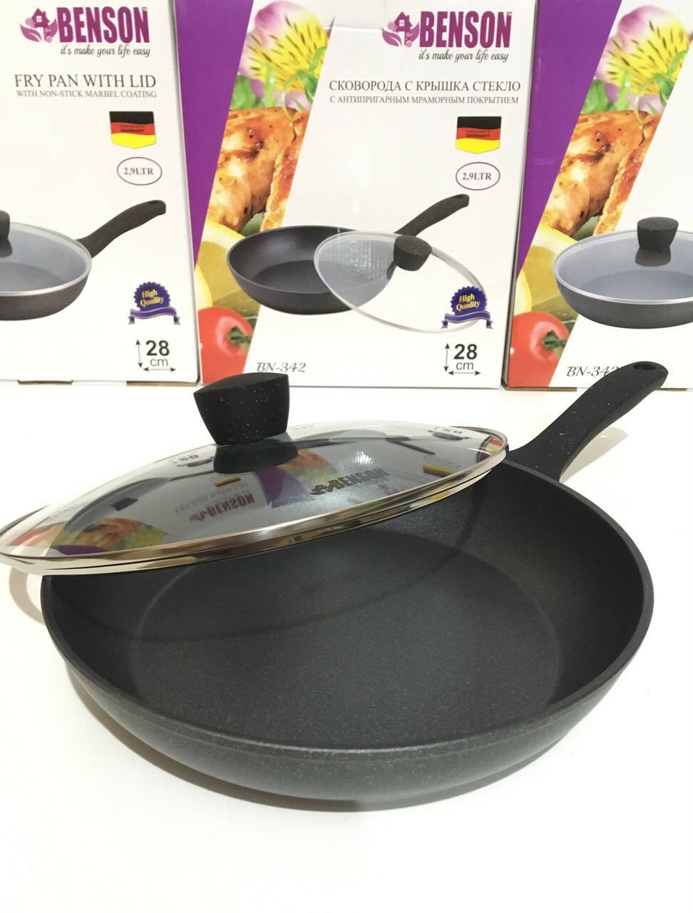 Сковорода з кришкою мармур покриття 24см BENSON BN-342 (8)