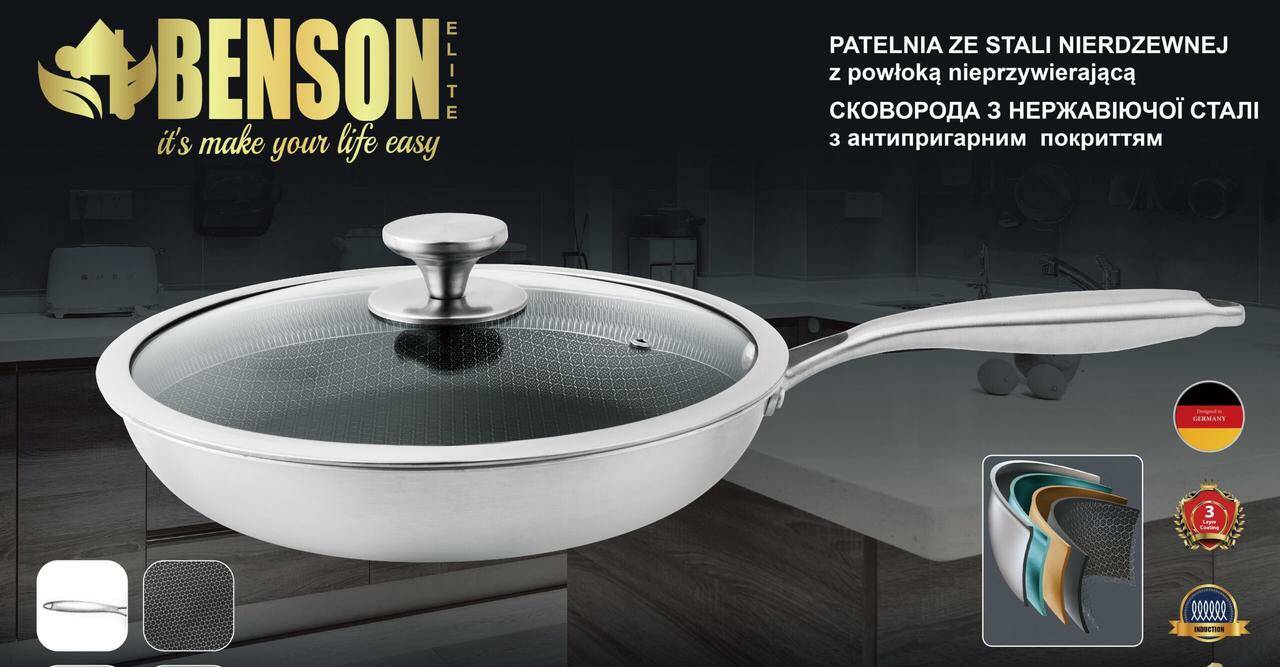 Сковорода з кришкою з неіржавкої сталі Антипригарне покриття, 24*5 см. BN-440 (6)