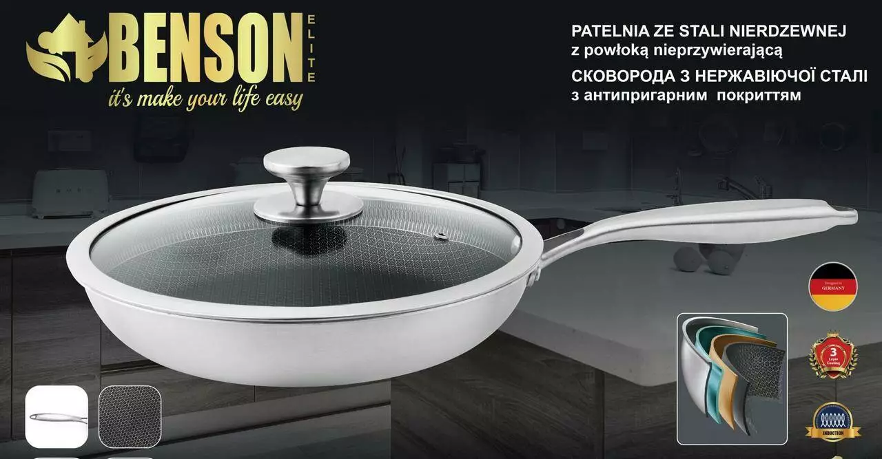 Сковорода з кришкою з неіржавкої сталі Антипригарне покриття, 24*5