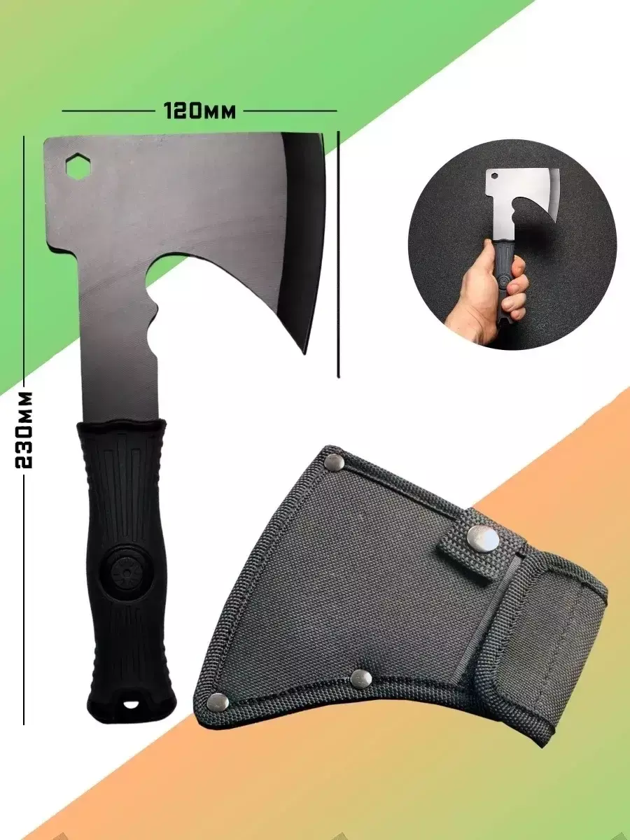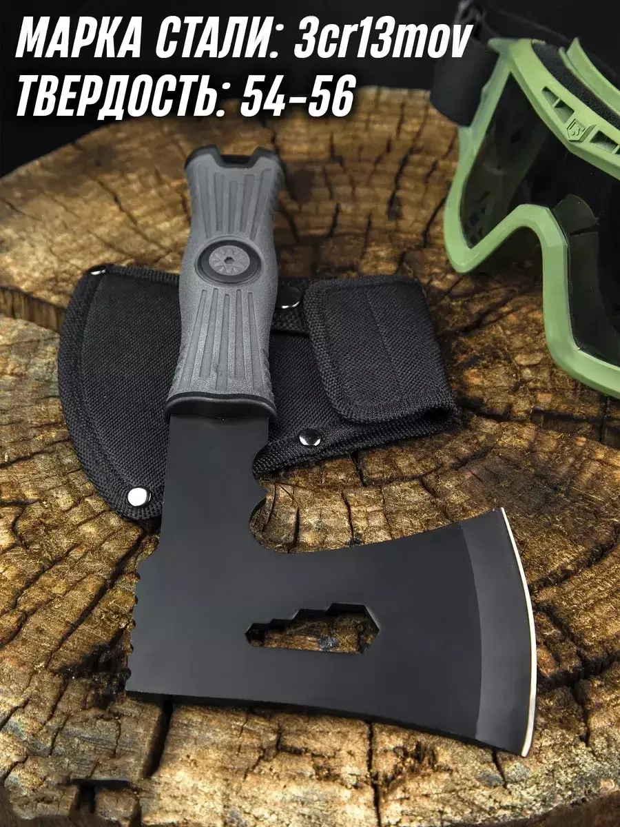 Сокира туристична сталева з прогумованою ручкою в чохлі EL-2381-13