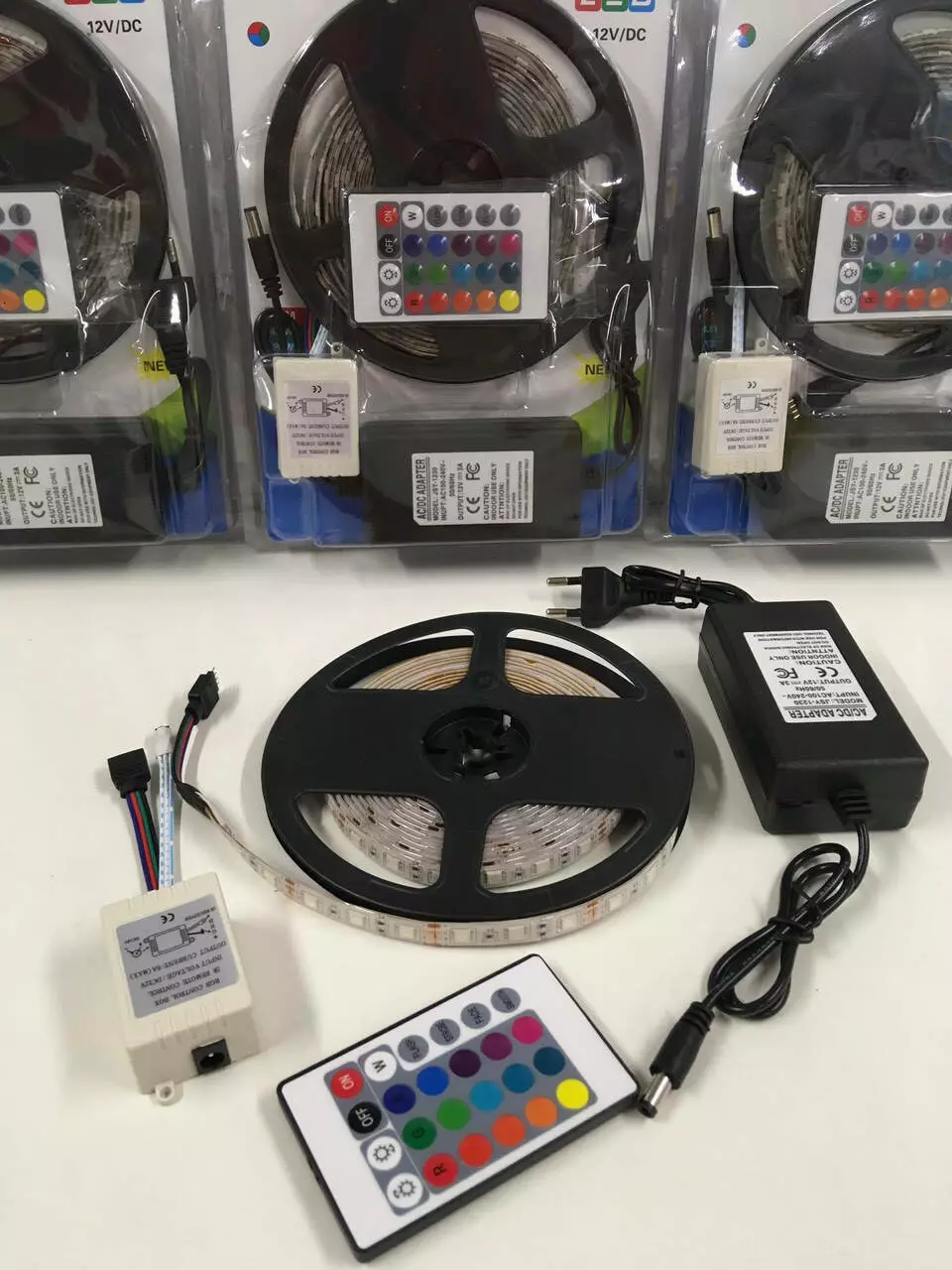 - На стрічці розташовані діоди трьох кольорів зелений, синій, червоний.